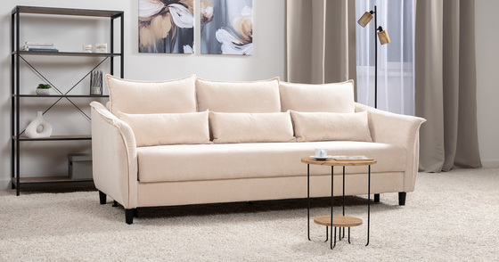 Диван-кровать прямой Дакота ТД 582 велюр Vendetta 02 кремовый, Riga 1598 z1 col 6 бежевый, Romeo 02