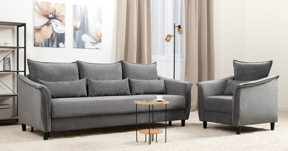 Диван-кровать прямой Тэдди 1506 композиция 1, букле Pique 011 серый, модульная система