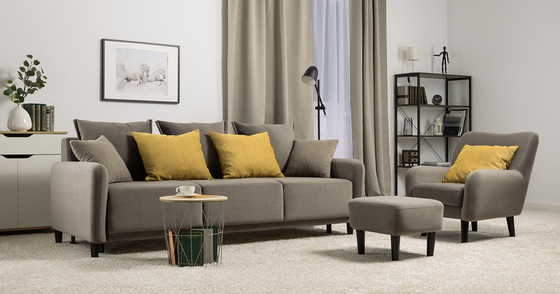 Диван-кровать прямой Дакота ТД 583 велюр Vendetta 10 серо-коричневый, Riga 1598 z1 col 34 горчичный, Romeo 03