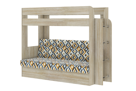 Кровать детская двухъярусная Карамель 75 Дуб Сонома, диван - велюр OTTO YELLOW желтые треугольники (сборка на любую сторону) спальное место верх 80х190, низ 120х185