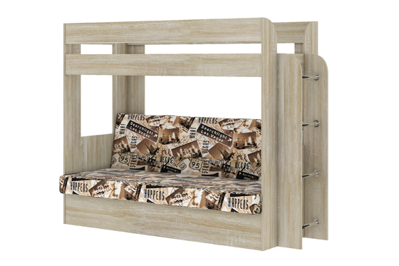 Кровать детская двухъярусная Карамель 75 Дуб Сонома, диван - велюр Газета (сборка на любую сторону) спальное место верх 80х190, низ 120х185