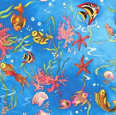 Детская ткань на выбор в соответствии с картинкой карточки - Т 19 Рыбки.
