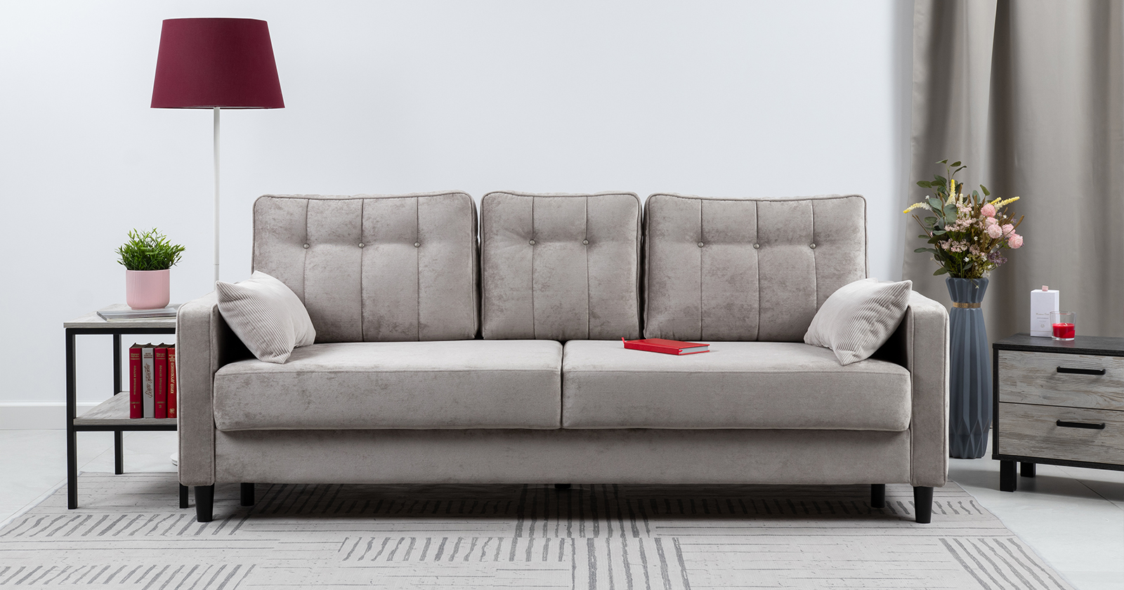 Диван-кровать прямой Арно ТД 563 велюр Лаки 02 серый жемчуг, Vertical 910 молочно-серый