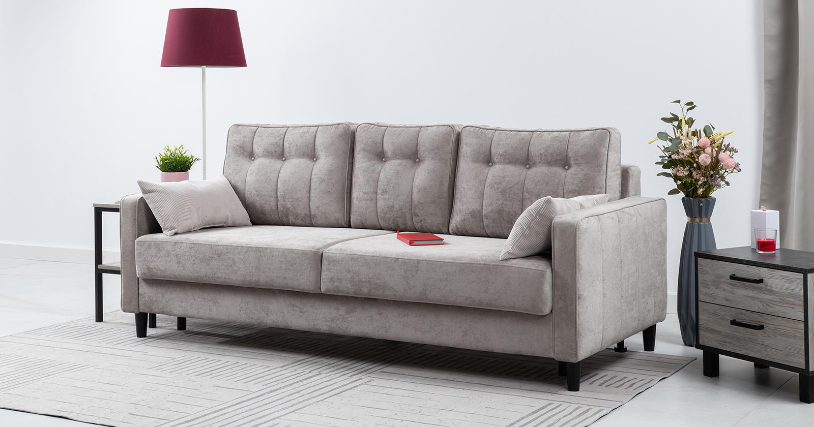 Объемные подушки дивана обеспечивают эргономичную посадку, а ровное спальное место - полноценный ночной отдых.