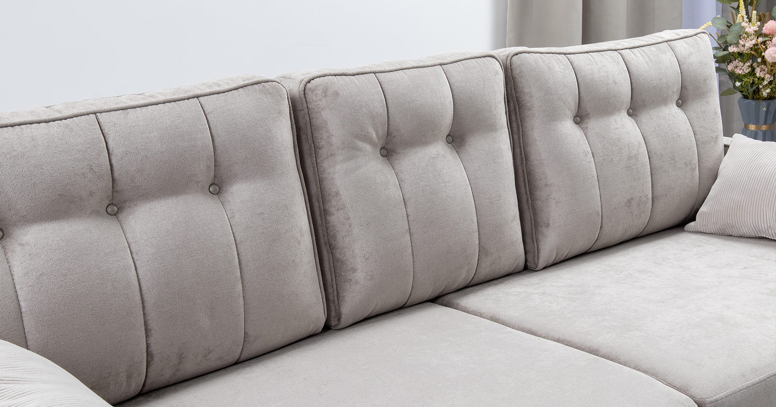 Подушки имеют трапециевидную форму, с утолщением к низу для комфорта посадки. Кант по всему периметру подушек, декоративные утяжки металлическими пуговицами, вертикальная стежка.