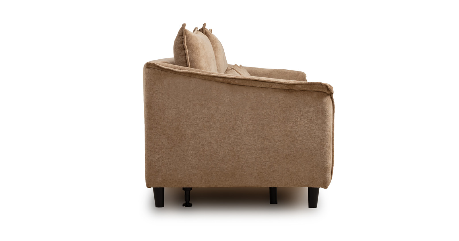 Спинка с тремя приспинными подушками. Две подушки трапецивидной формы, центральная квадратной формы на молнии, по трем сторонам которых проложена отделочная строчка на 1,2 см. По контуру боковин проложен декоративный кант на 1,2 см из основной ткани. Кант проходит по центру передней части боковины, а по внутренней верхней части сборка.