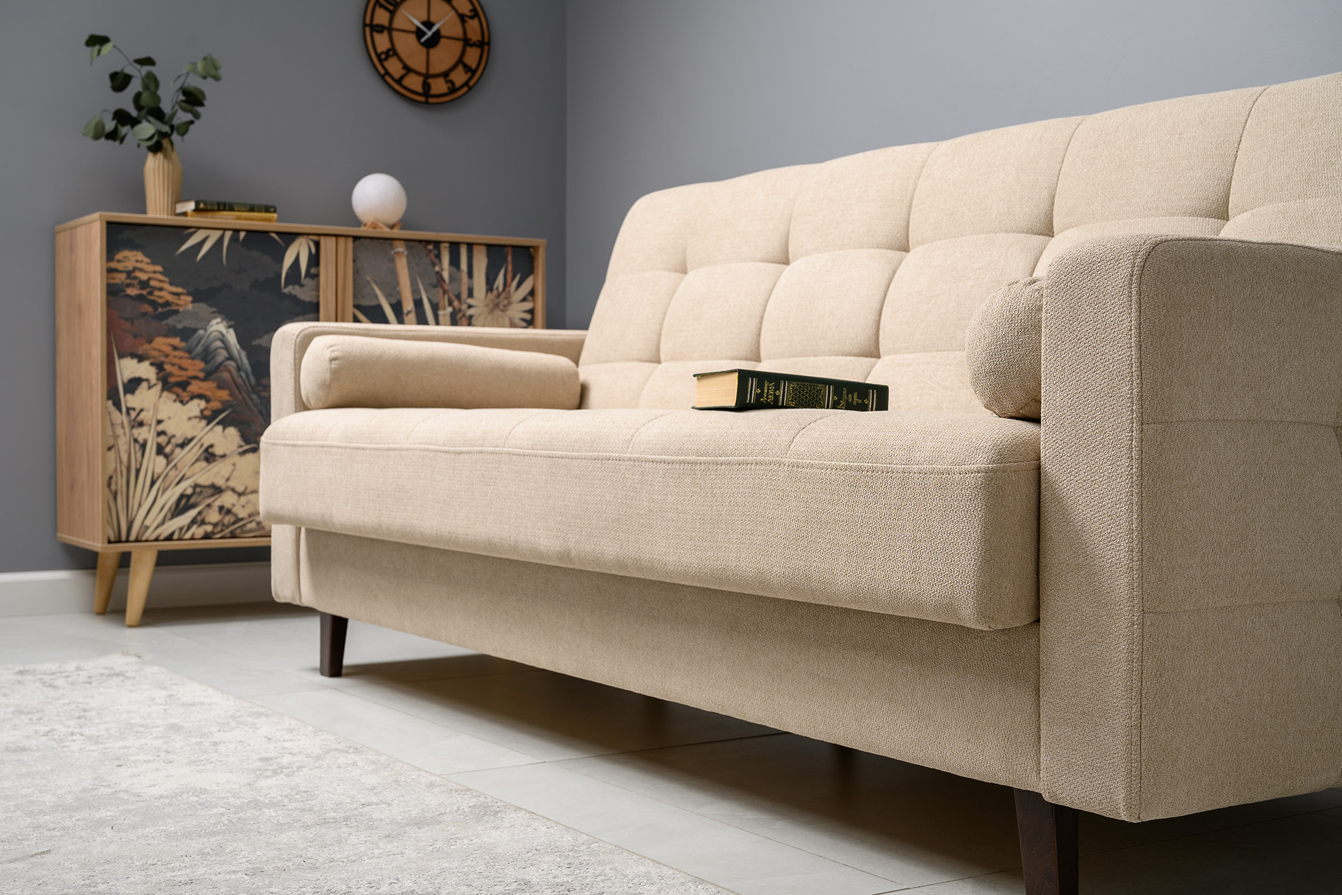 Сдержанная форма скандинавского минимализма дивана Эмили — решение для ценителей лаконичного дизайна. Усовершенствованная система комфорта в виде комбинации ортопедических гнутоклееных лат и независимого пружинного блока идеально подойдет для ежедневного использования.