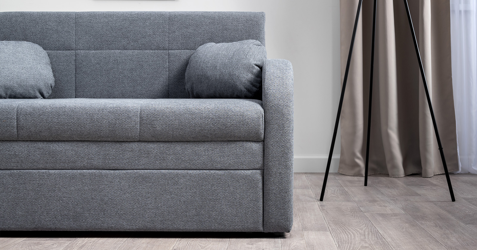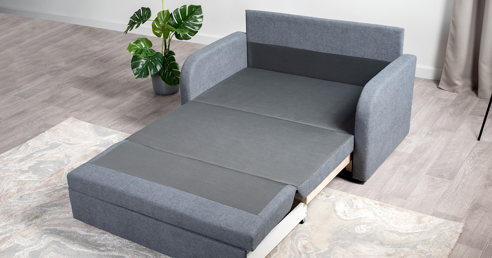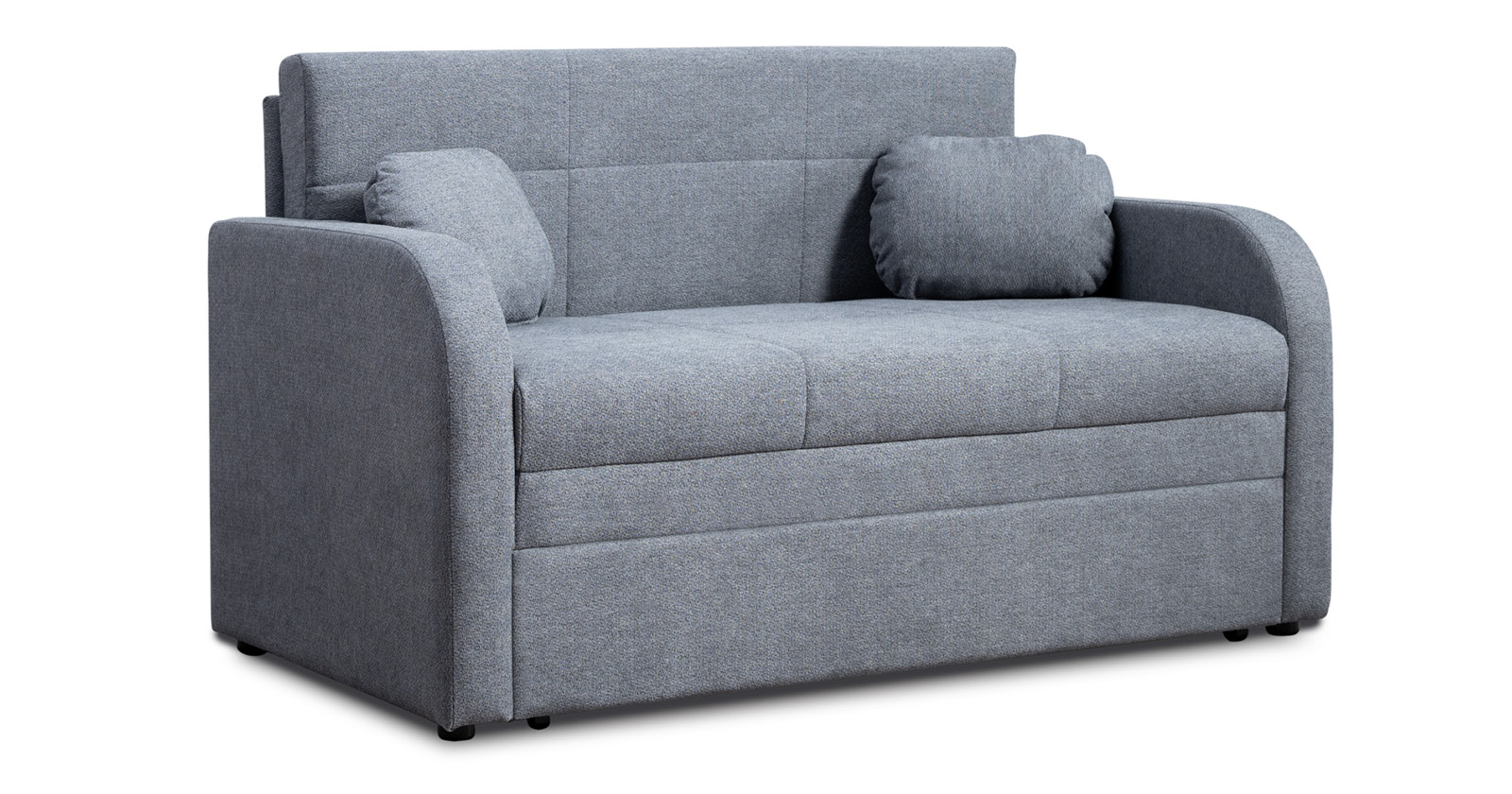 Коллекция выполнена в современном минималистичном стиле с мягкой обивкой из износостойкой ткани и декоративной стежкой, подчеркивающей геометрию форм. Механизм трансформации обеспечивает дополнительное спальное место, делая мебель не только эстетичной, но и максимально функциональной для небольших пространств.