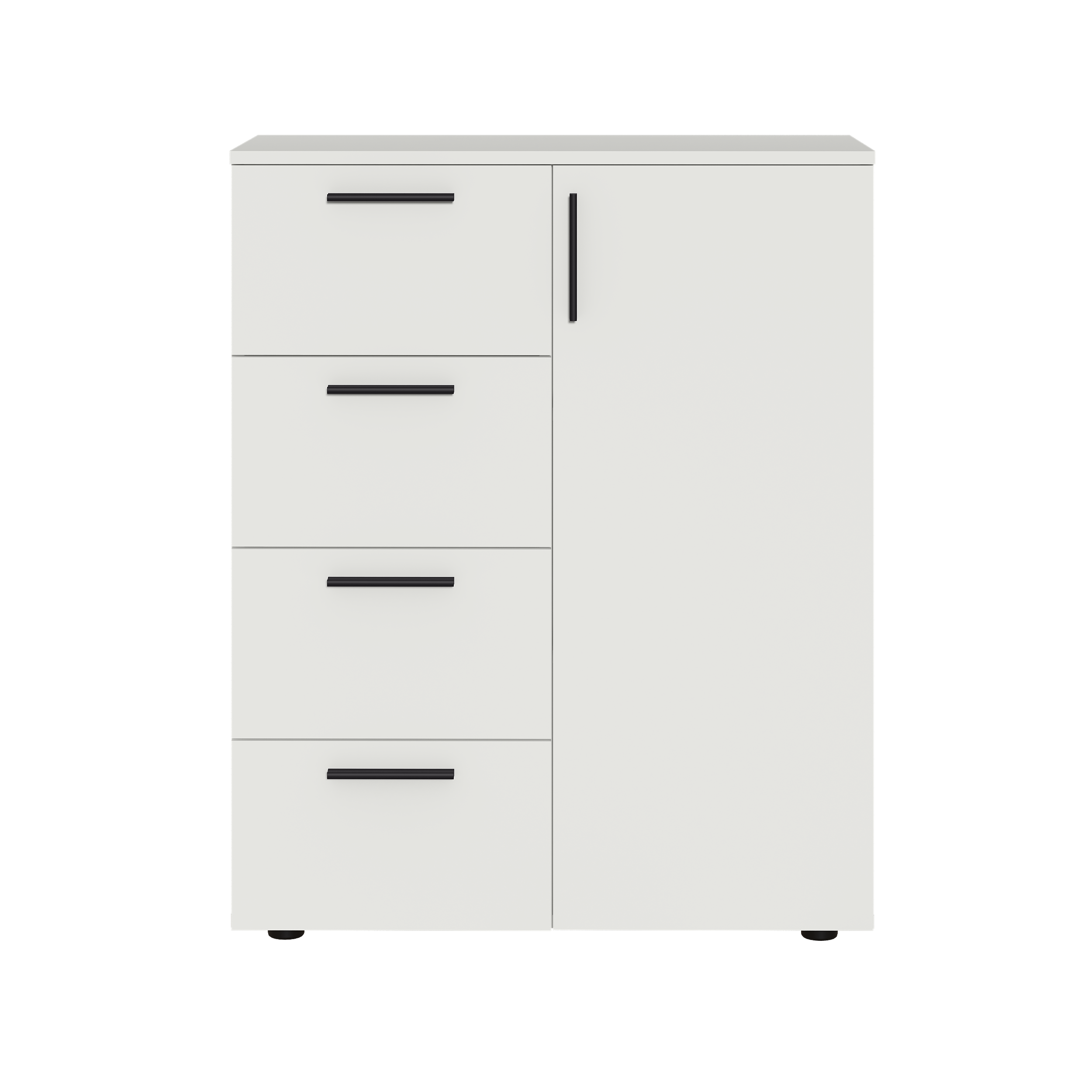 Модули универсальны и сочетаются между собой. Открытые и закрытые ниши для хранения, защитные пластиковые демпферы, съемные полки, направляющие полного выдвижения в ящиках – комфорт продуман до мелочей.