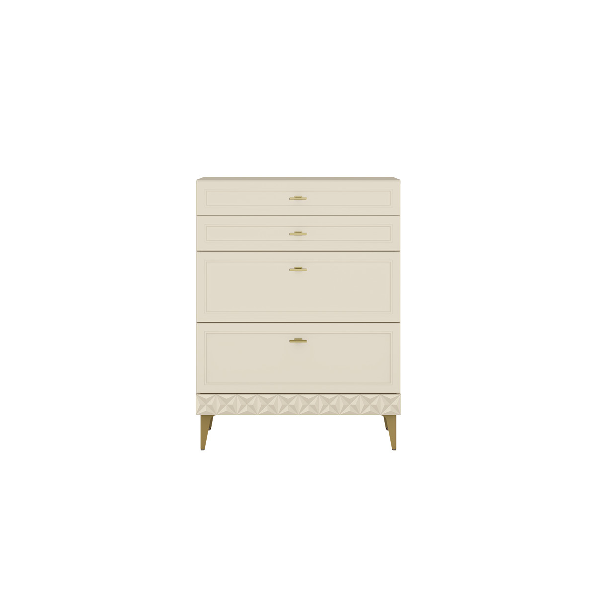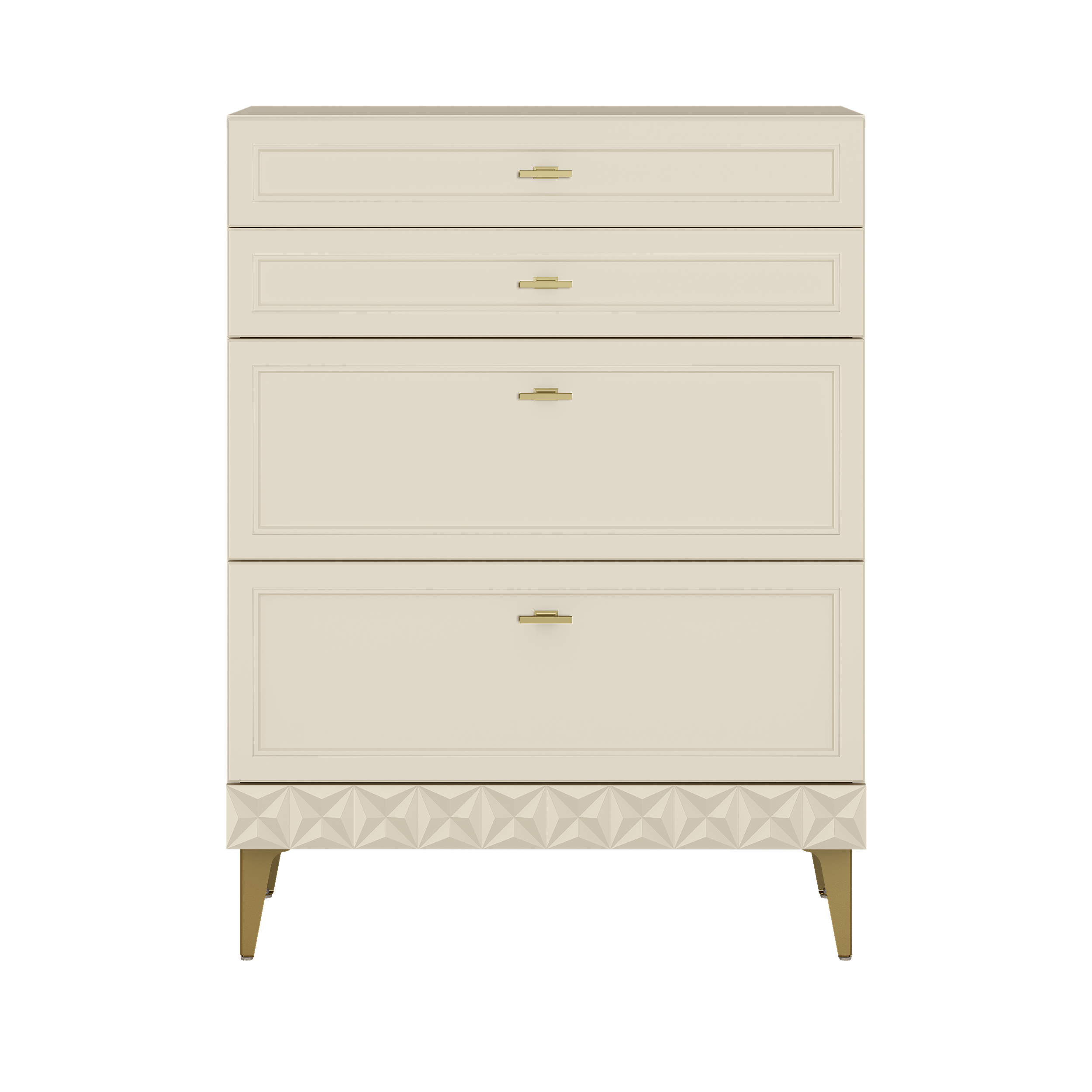 Изящные линии, глубокая фрезеровка фасадов из МДФ и благородные оттенки. Утончённая «Слоновая кость» и изысканная «Олива Шагрень» с глубоким зелёным тоном — создают атмосферу уюта, тепла и благородства. Металлические ручки и опоры золотого цвета придают мебели утончённый блеск, а петли и направляющие с доводчиками обеспечивают плавное и бесшумное закрытие фасадов.