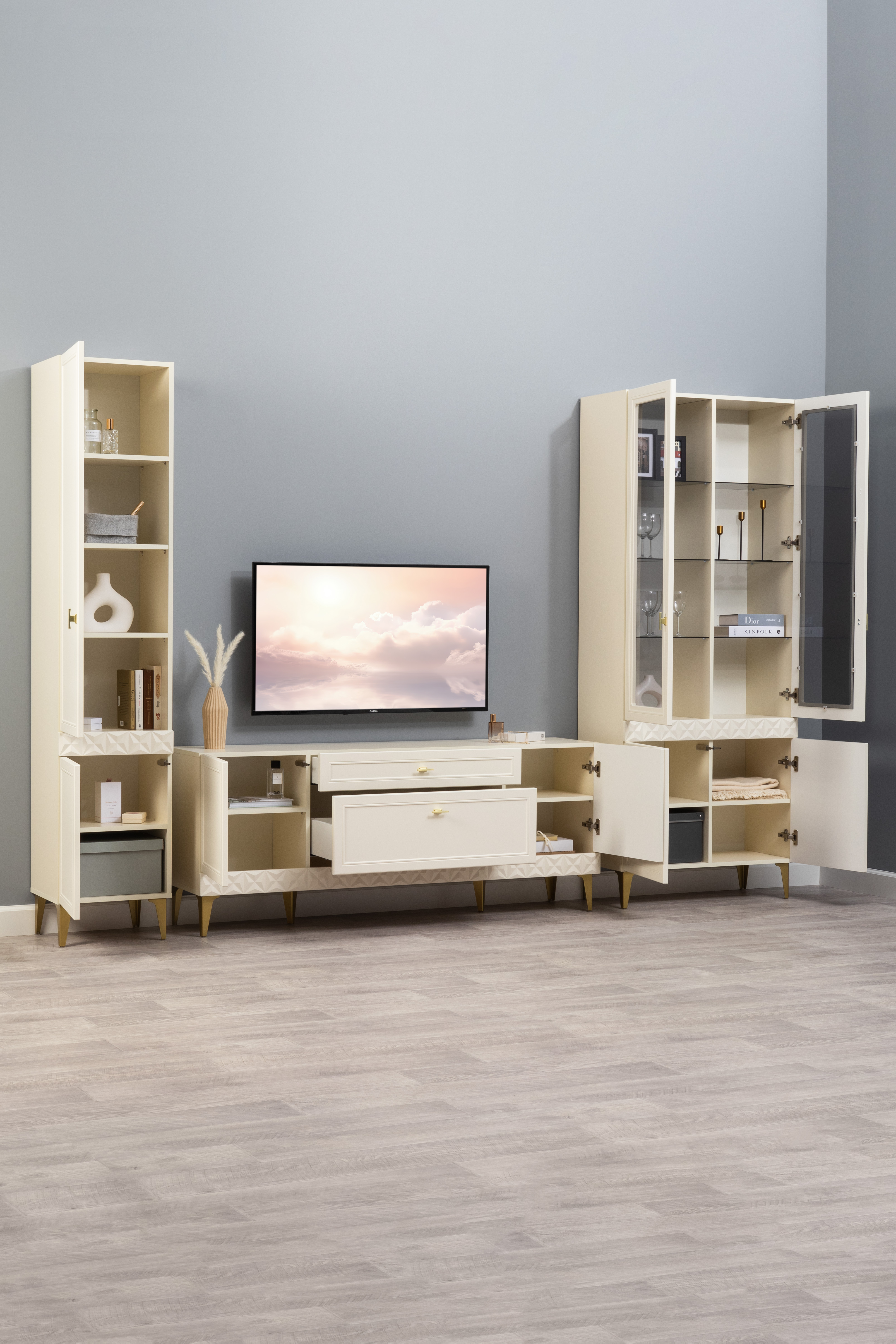 Гостиная Марион композиция 1 слоновая кость С341 PE, слоновая кость 6898 ПВХ, белый PE шагрень (собирается на любую сторону)