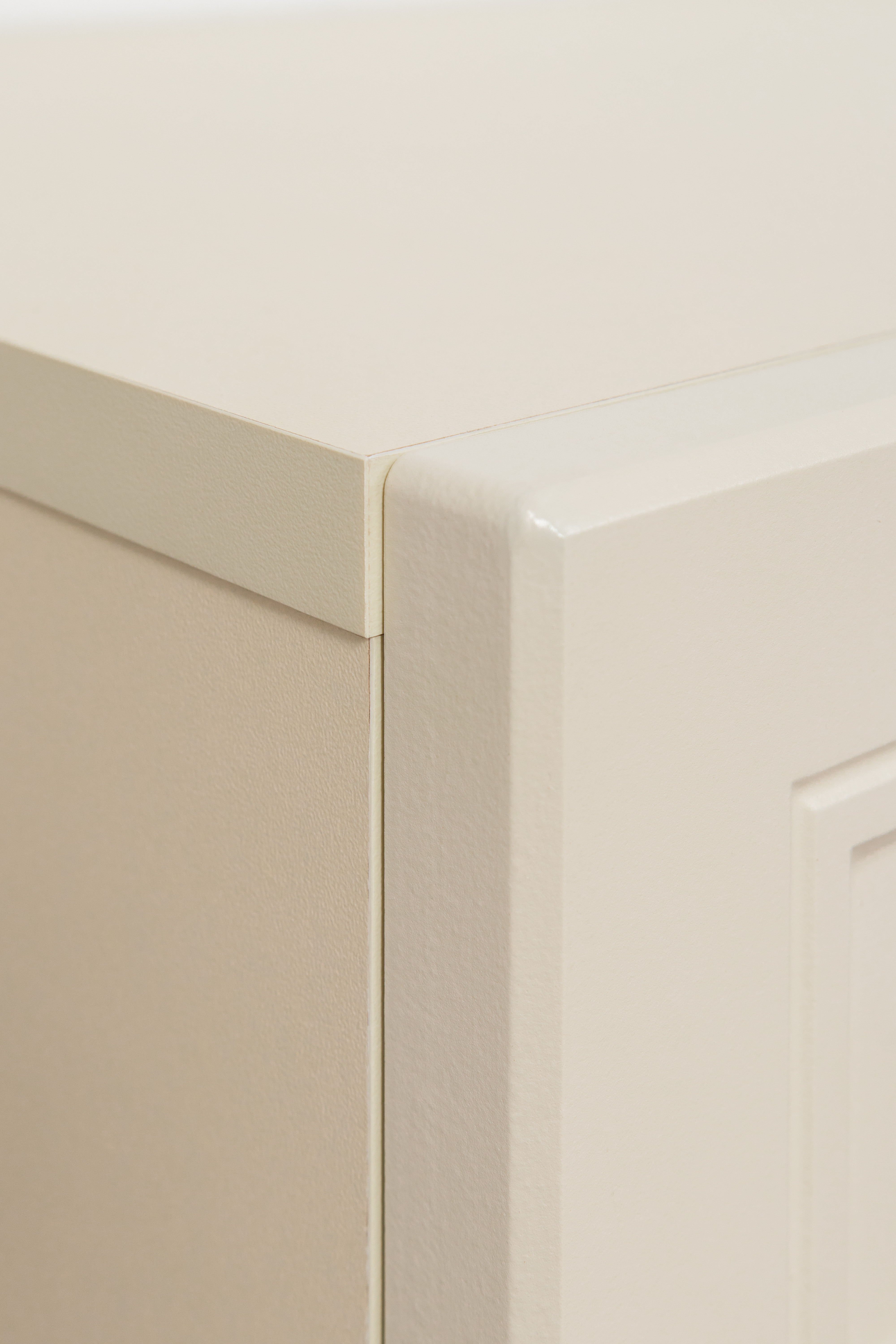 Изящные линии, глубокая фрезеровка фасадов из МДФ и благородные оттенки. Утончённая «Слоновая кость» и изысканная «Олива Шагрень» с глубоким зелёным тоном — создают атмосферу уюта, тепла и благородства. Металлические ручки и опоры золотого цвета придают мебели утончённый блеск, а петли и направляющие с доводчиками обеспечивают плавное и бесшумное закрытие фасадов.