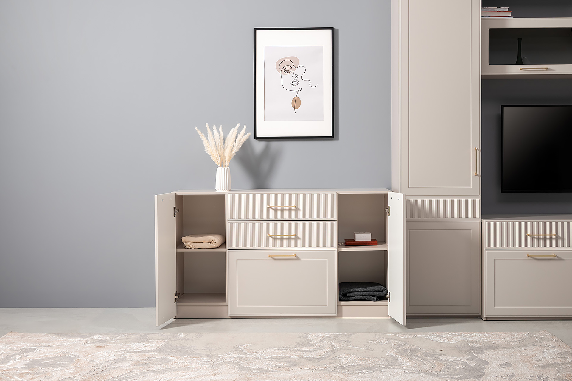 Комод Ричфорд 16.235 кашемир 5981 BS, моно керамика D166-2 ПВХ, белый PE шагрень