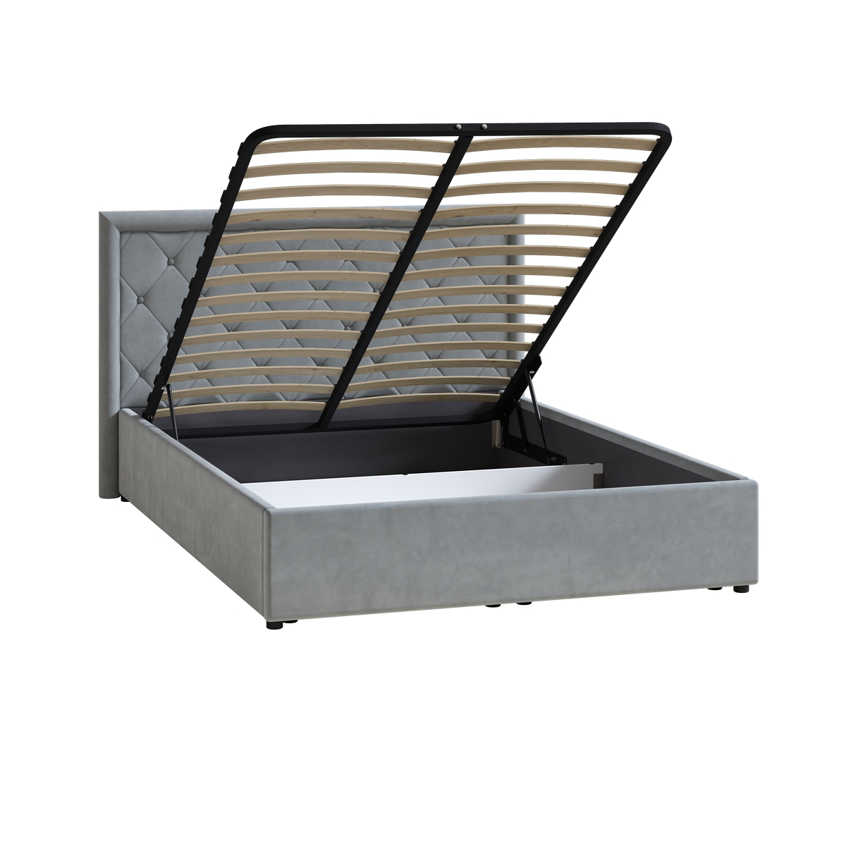 Кровать Марион 140 велюр OCEAN 023 серый с ортопедическим основанием и подъемным механизмом (спальное место 140 х 200)