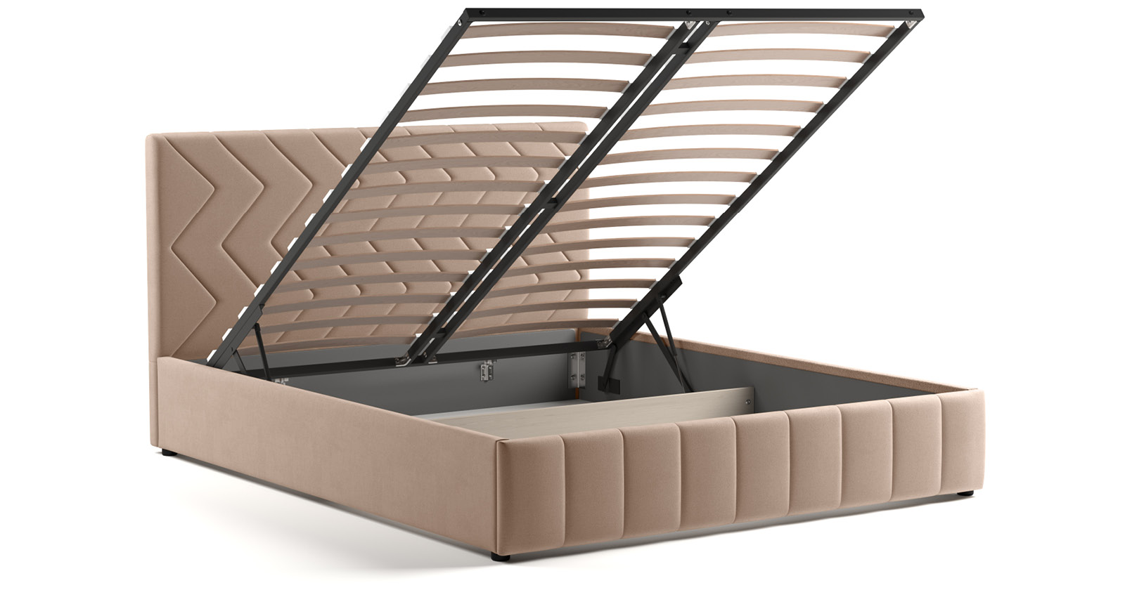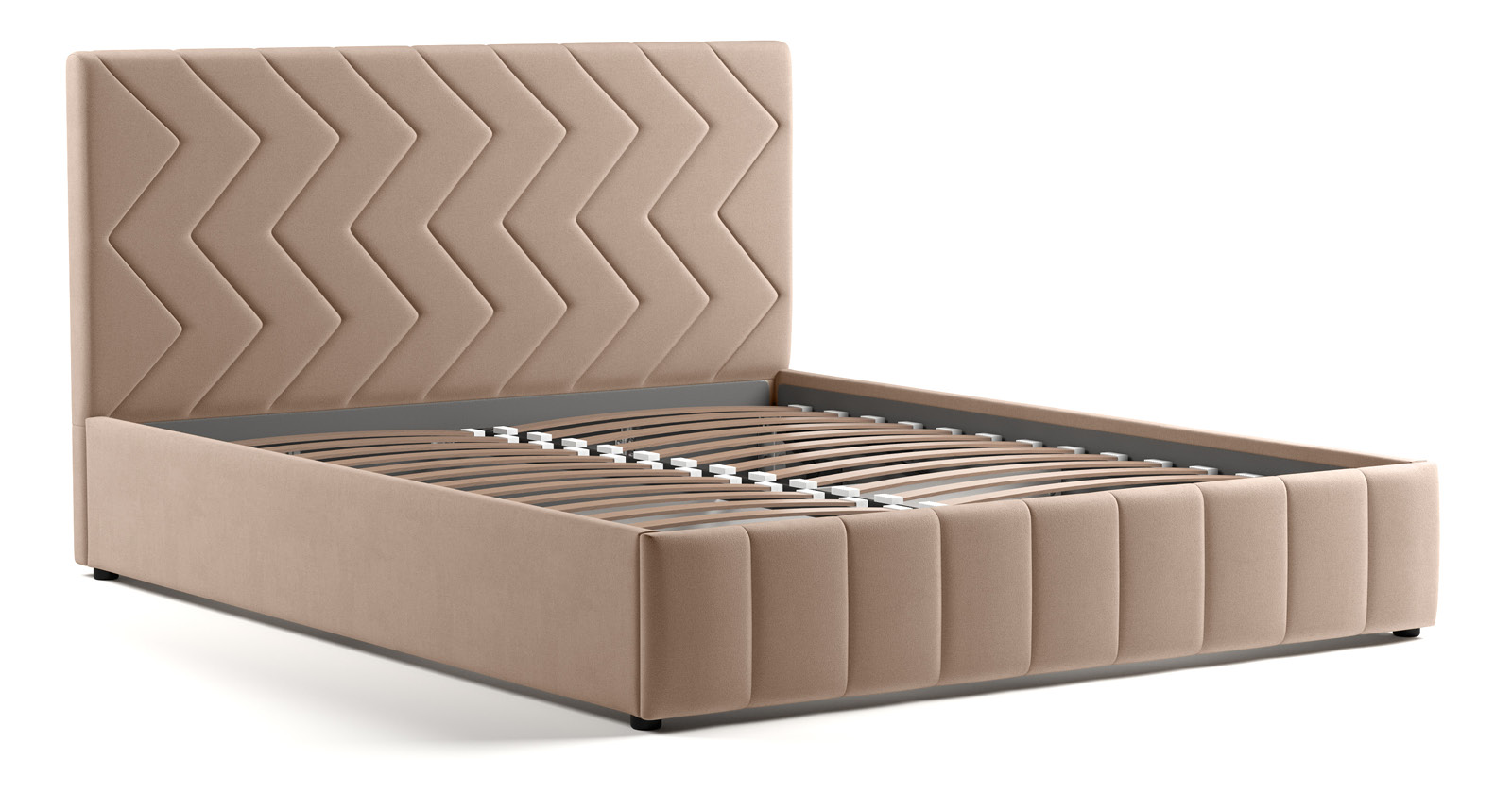 Кровать Милана 160 велюр бежевый кофейный с ортопедическим основанием и подъемным механизмом
