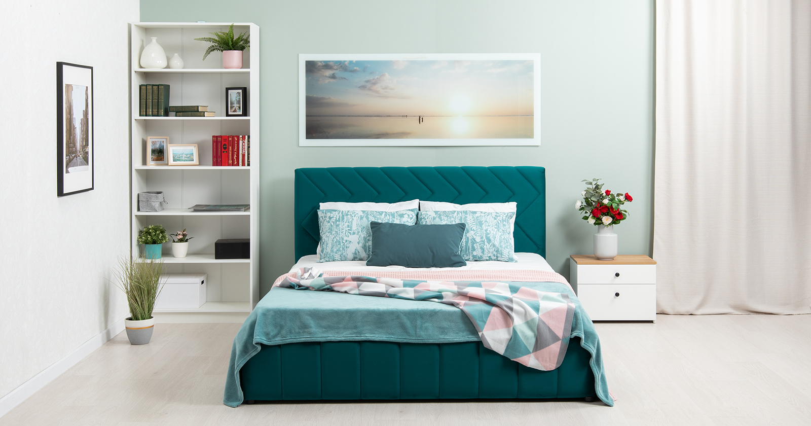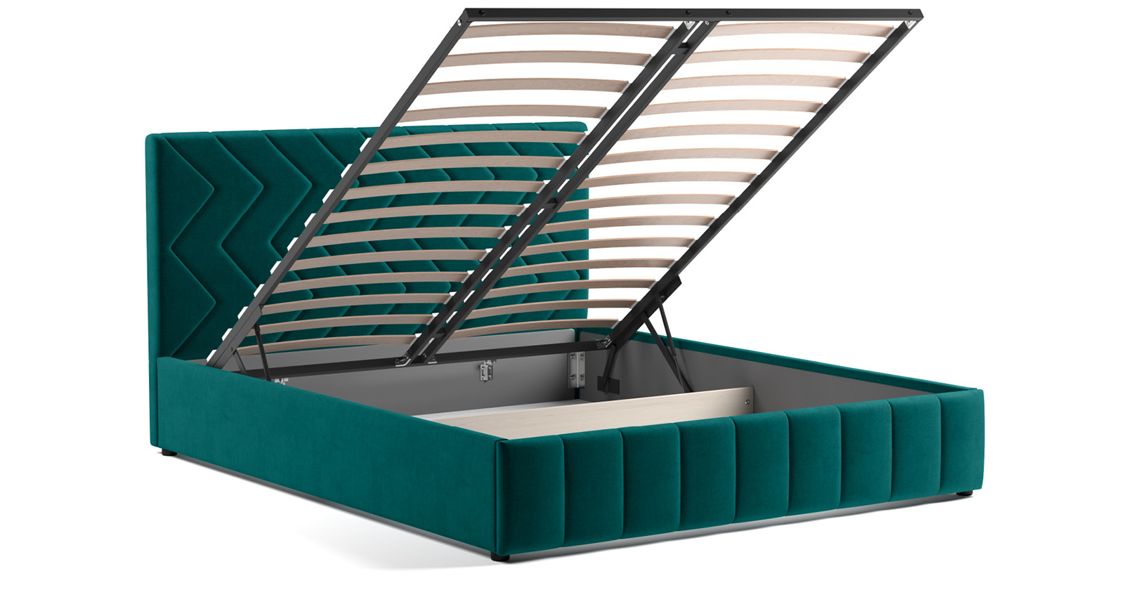 Кровать Милана 160 велюр сине-зеленый с ортопедическим основанием и подъемным механизмом