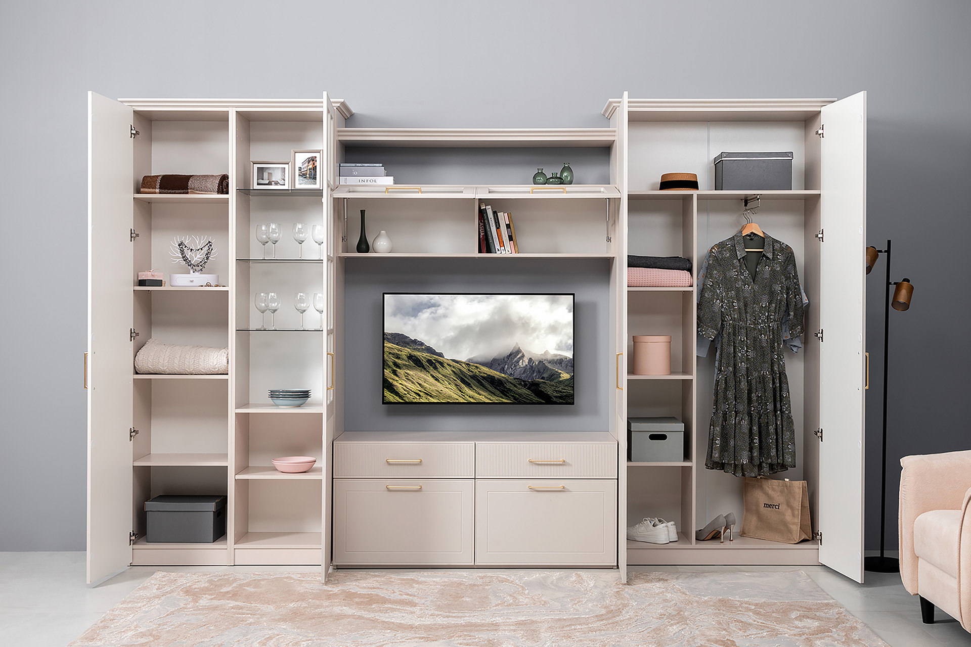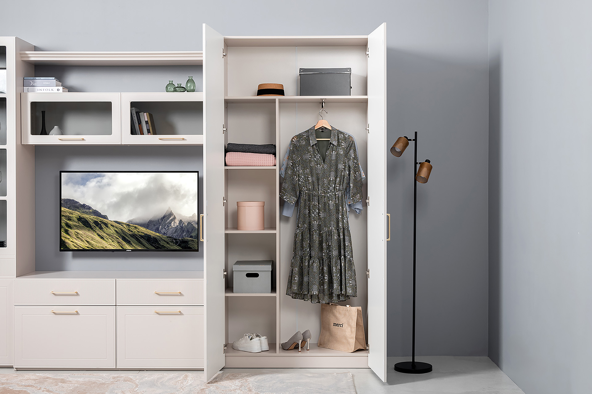 Шкаф для одежды Ричфорд 16.327.02 кашемир 5981 BS, моно керамика D166-2 ПВХ