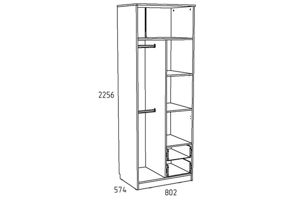 Шкаф «Акварель» предназначен для тех, кто любит практичность и комфорт. Шкаф обладает модным сочетанием материалов, цветов и подчеркивает настроение детства – радость новизны и жажду открытий. Отделение с 2-мя штангами позволит удобно развесить большое количество одежды на вешалках. Наличие полок позволит рассортировать одежду и поставить коробки. Два выдвижных ящика предназначены для сложенной одежды, аксессуаров, личных вещей.