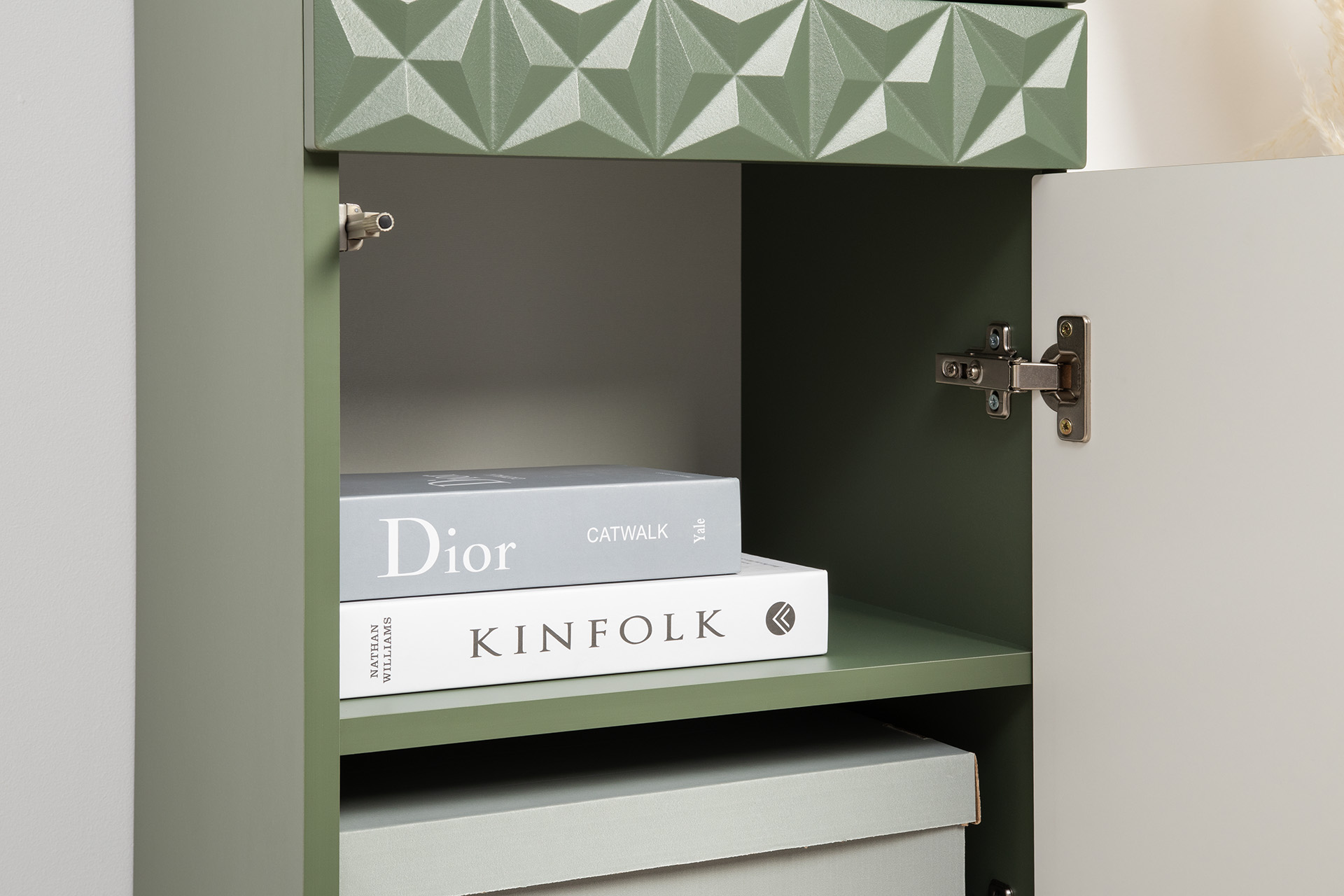 Шкаф-пенал Марион 16.333.01 дымчатый зеленый K521, олива шагрень AG 1050 ПВХ (собирается на любую сторону)