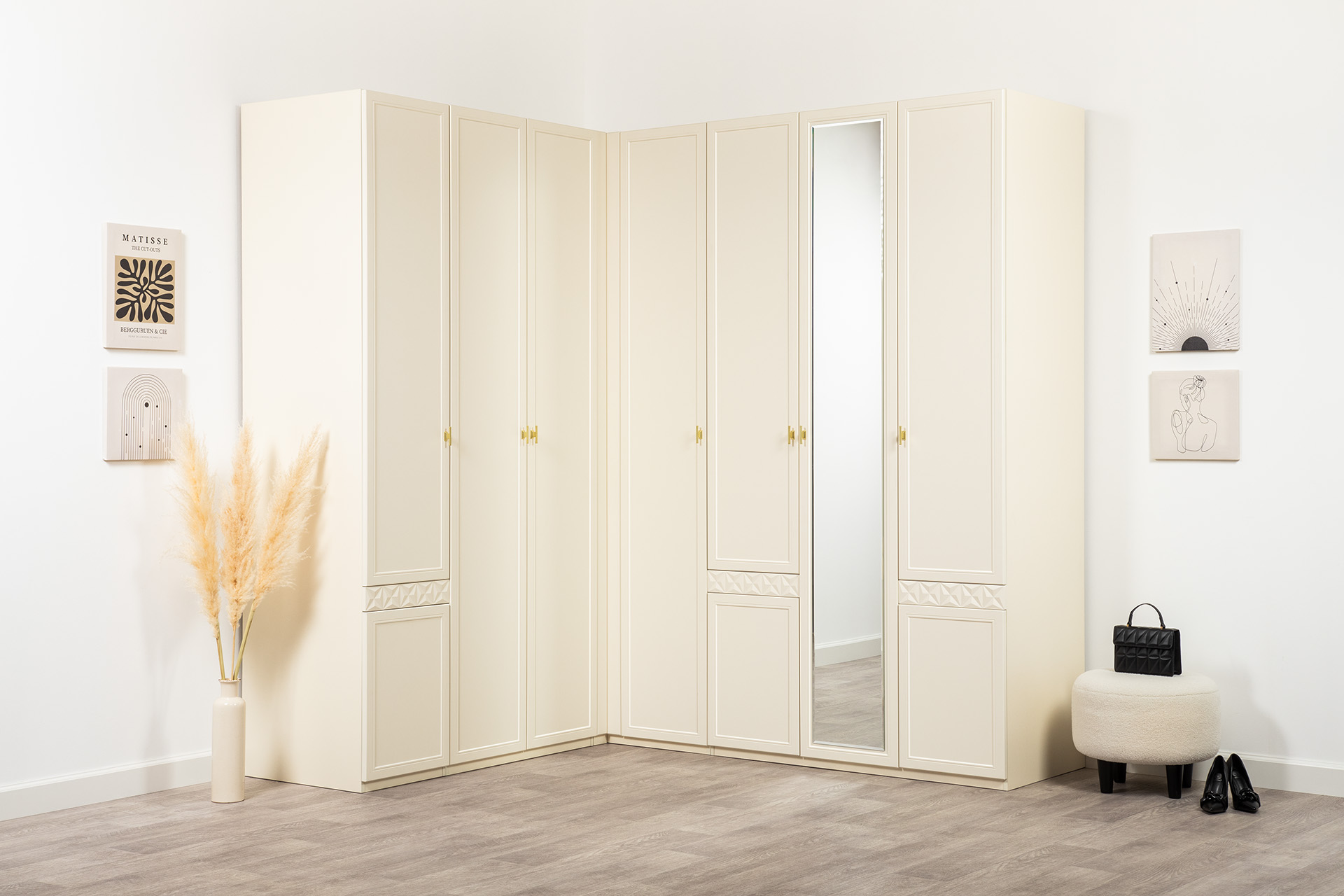 Шкаф угловой Марион 16.339 слоновая кость С341 PE, слоновая кость 6898 ПВХ (собирается на любую сторону)