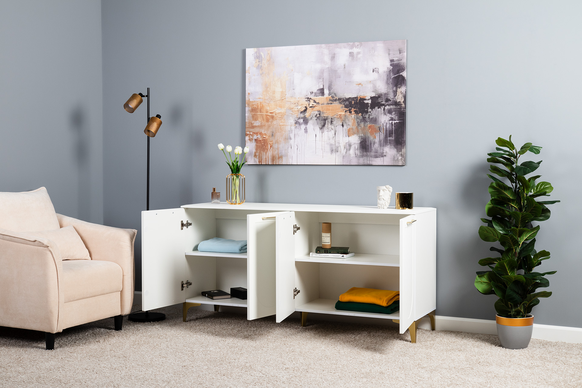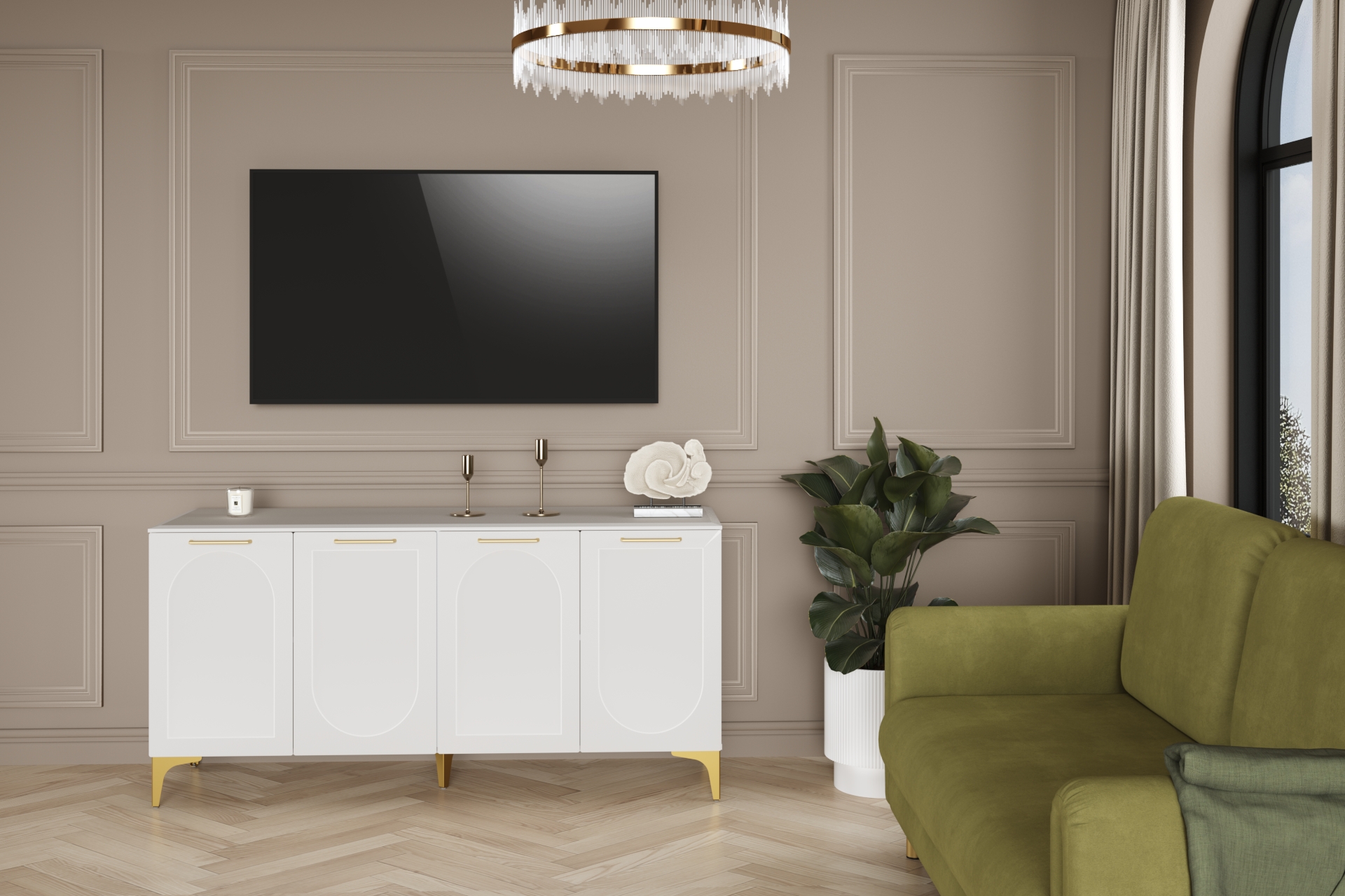 Тумба под ТВ в гостиную Бэль 10.91 белый премиум, дуб золотой CRAFT