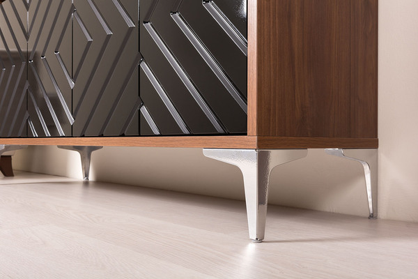 Тумба под ТВ в гостиную Муар 13.261 орех селект каминный, черный глянец ПВХ